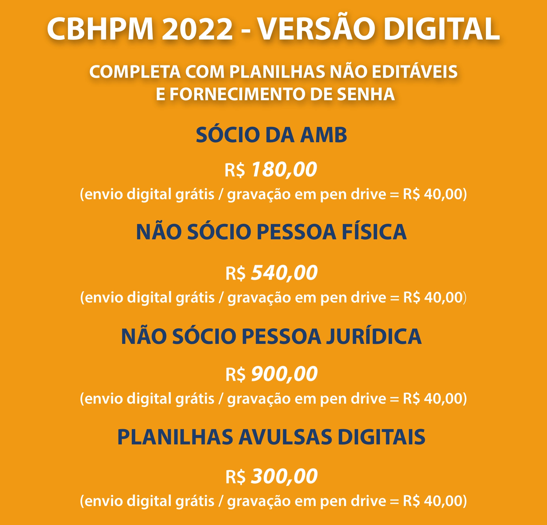 ADQUIRA JÁ ADQUIRA JÁ Obs.: Solicitações realizadas para aquisição da CBHPM de edições anteriores (versão física ou digital), bem como de planilhas avulsas anteriores, seguirão os mesmos valores das versões atualizadas.