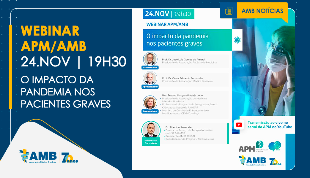 WEBINAR APM/AMB 24.NOV | 19H30 O IMPACTO DA PANDEMIA NOS PACIENTES GRAVES 18 de novembro de 2021 Leia Mais »