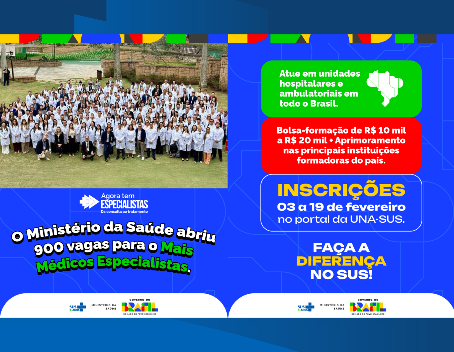 Ministério da Saúde abre 900 vagas para o programa Mais Médicos Especialistas 10 de fevereiro de 2026 Leia Mais »
