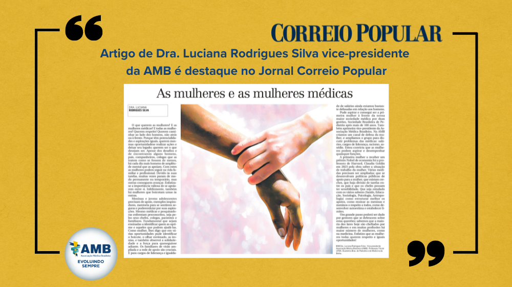 Artigo As mulheres e as mulheres médicas – Dra. Luciana Rodrigues Silva, 1ª vice-presidente da AMB 2 de agosto de 2024 Leia Mais »
