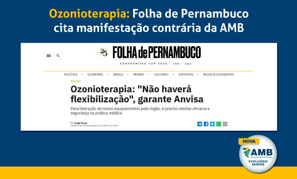 Ozonioterapia: Folha de Pernambuco cita manifestação contrária da AMB 22 de agosto de 2023 Leia Mais »