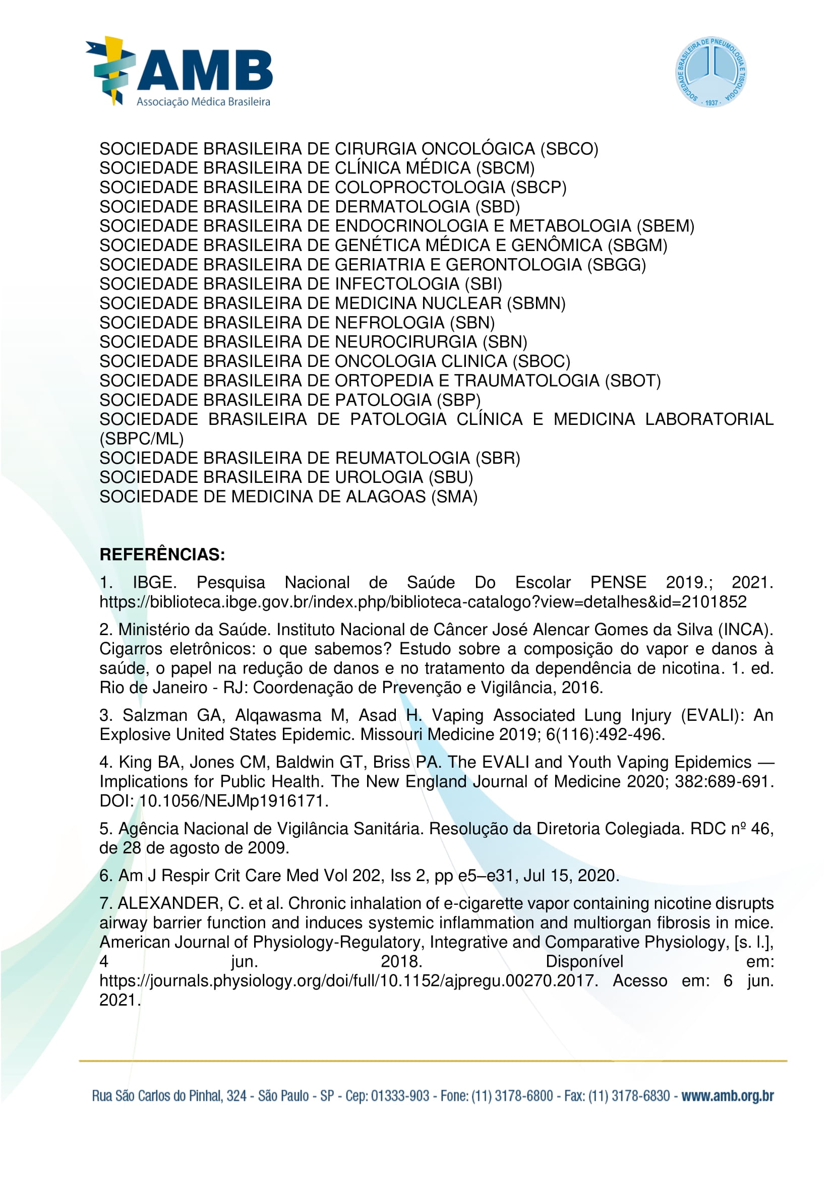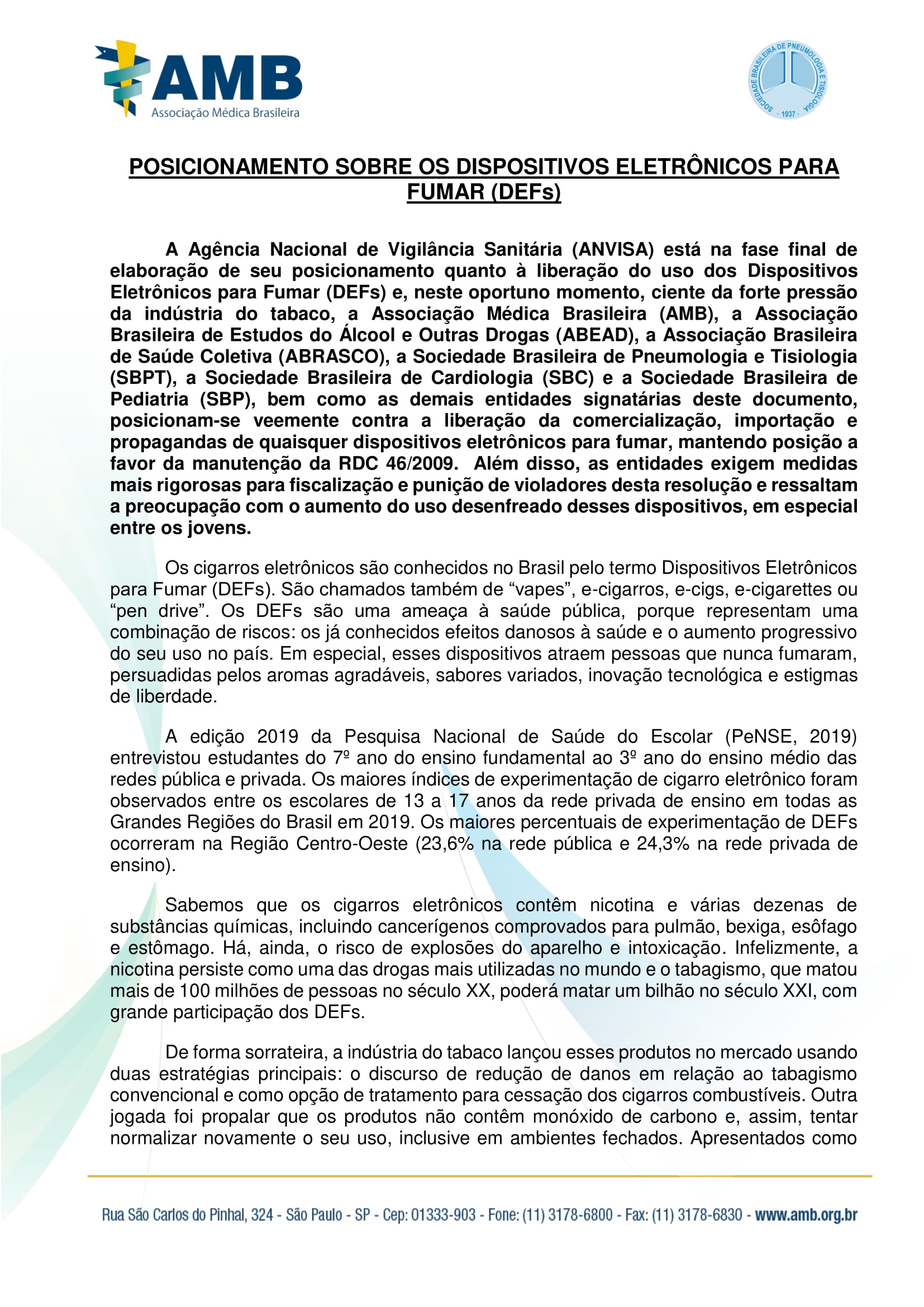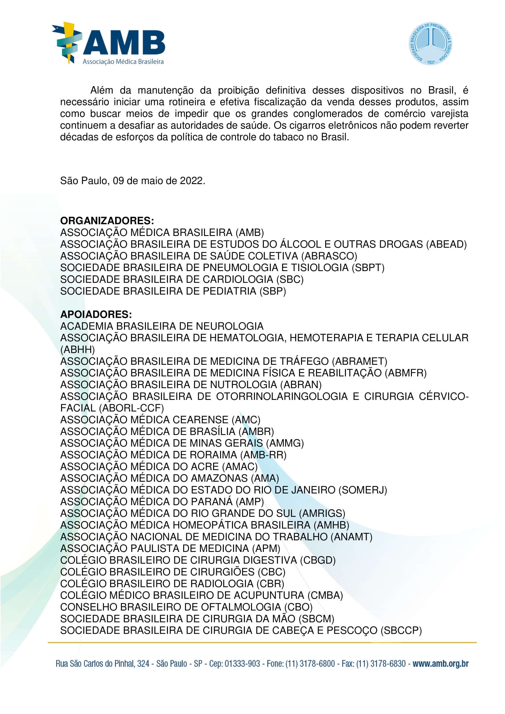 A AMB e a SBPT (Sociedade Brasileira de Pneumologia e Tisiologia) são veemente contra essa liberação.