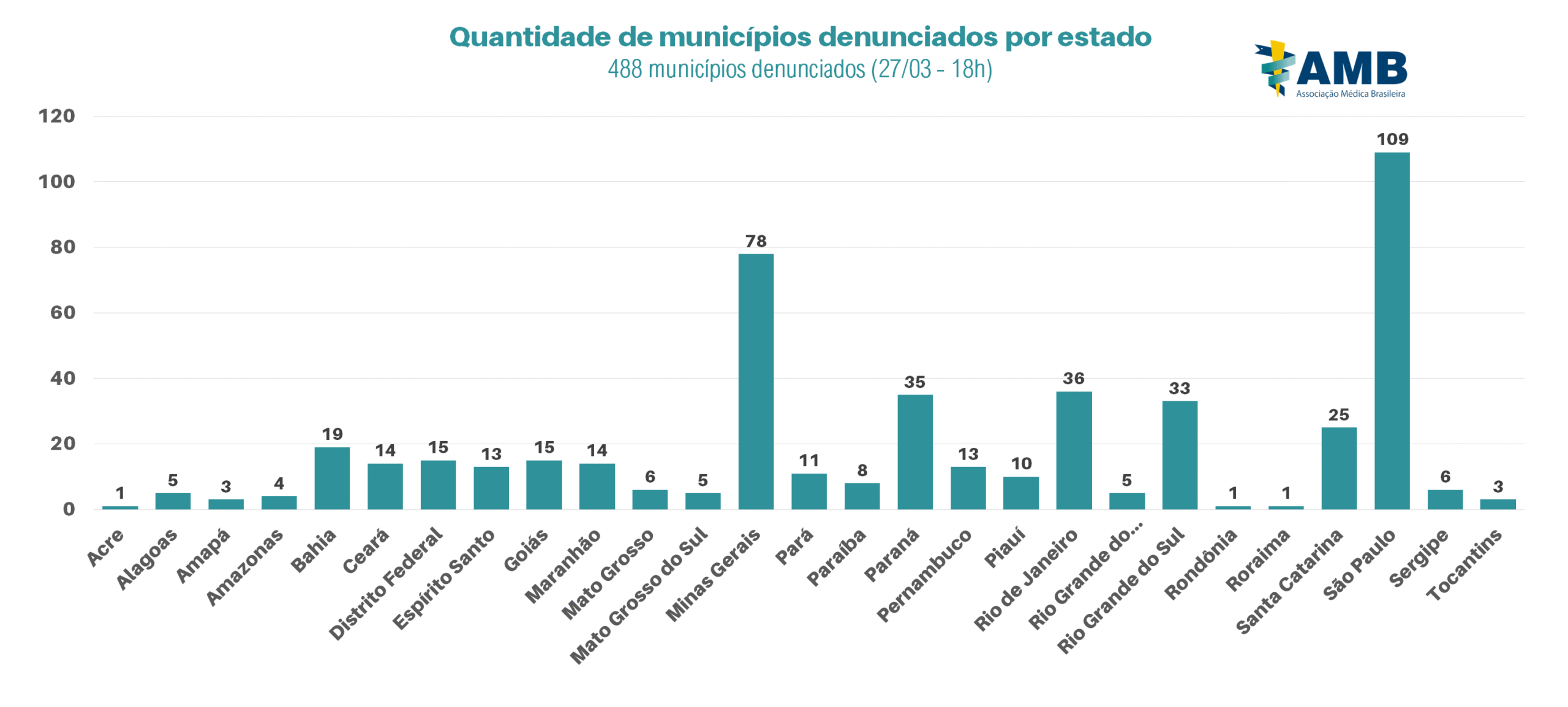 Denuncias falta de EPIs municípios por estado barras 28 de março de 2020 2560 × 1154 Denuncias falta de EPIs municípios por estado barras