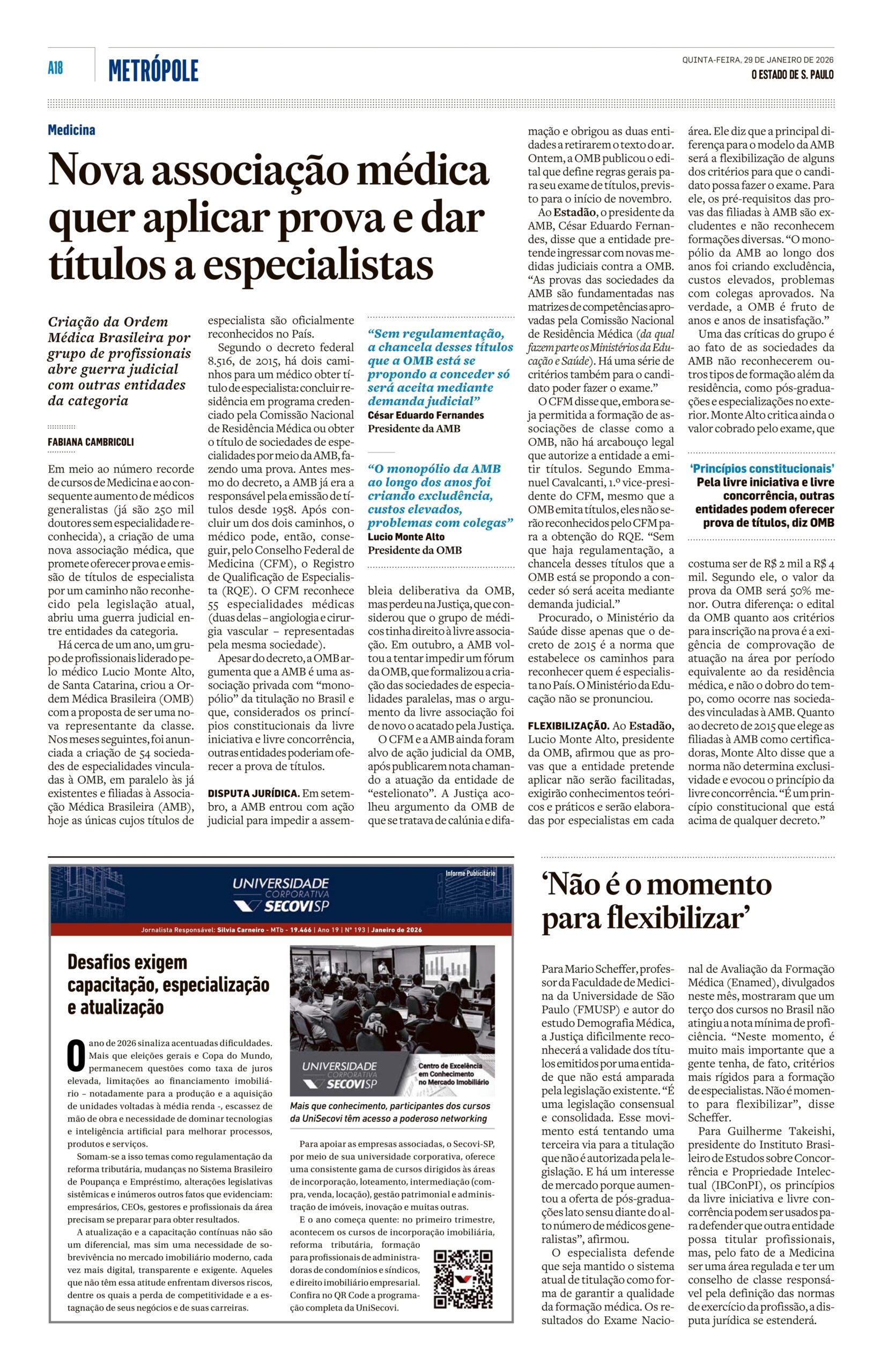 Leia a íntegra: Estado de S.Paulo (online): Nova entidade médica promete emitir títulos de especialistas e abre guerra judicial com CFM e AMB