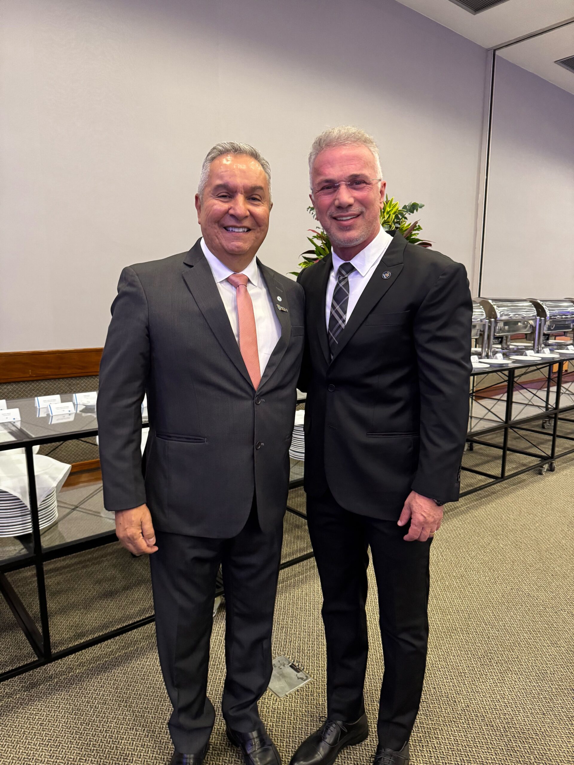 Dr. Rômulo Capello Teixeira, diretor cultural da AMB (à esquerda), e o novo diretor-presidente da SBA, Dr. Antônio Carlos Aguiar Brandão.