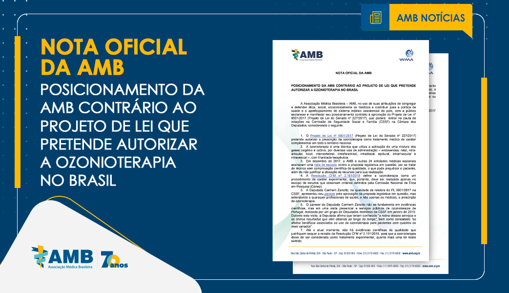 NOTA OFICIAL DA AMB | POSICIONAMENTO DA AMB CONTRÁRIO AO PROJETO DE LEI QUE PRETENDE AUTORIZAR A OZONIOTERAPIA NO BRASIL 13 de setembro de 2021 Leia Mais »
