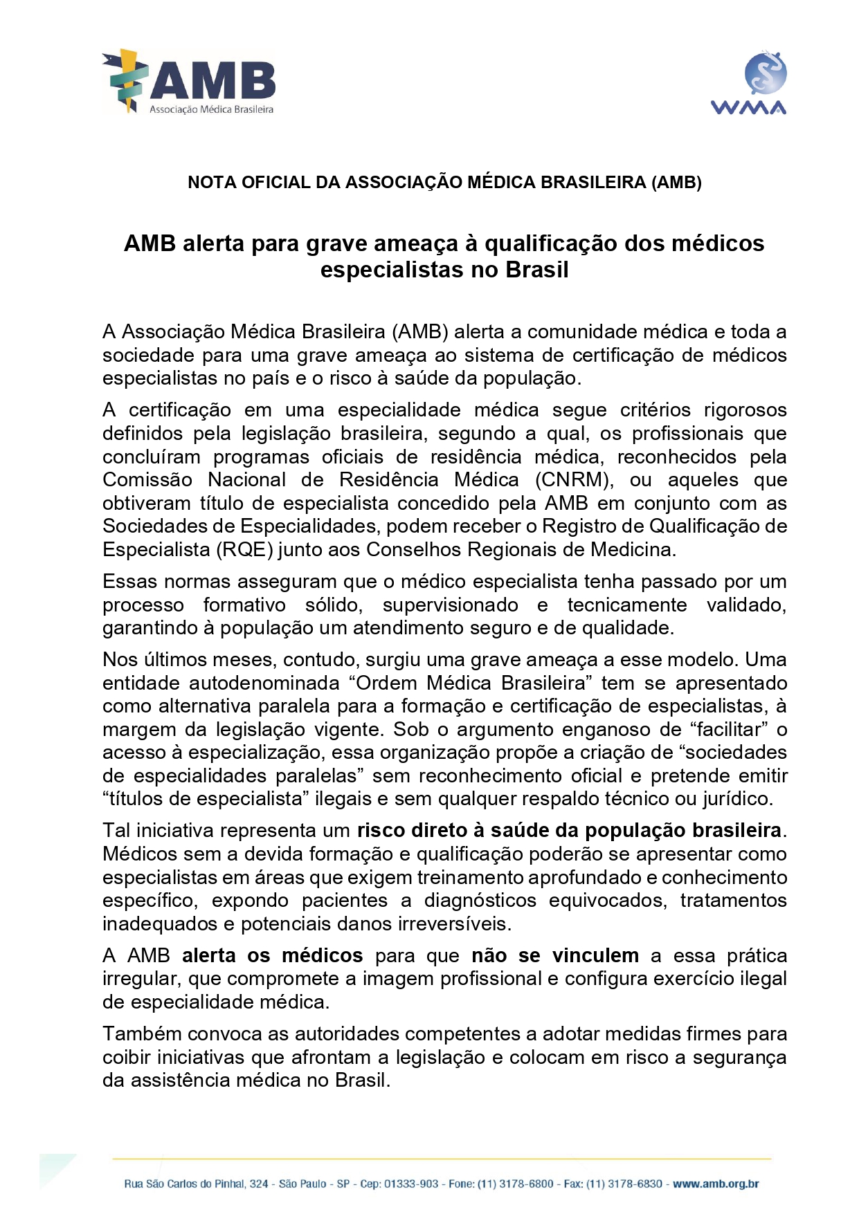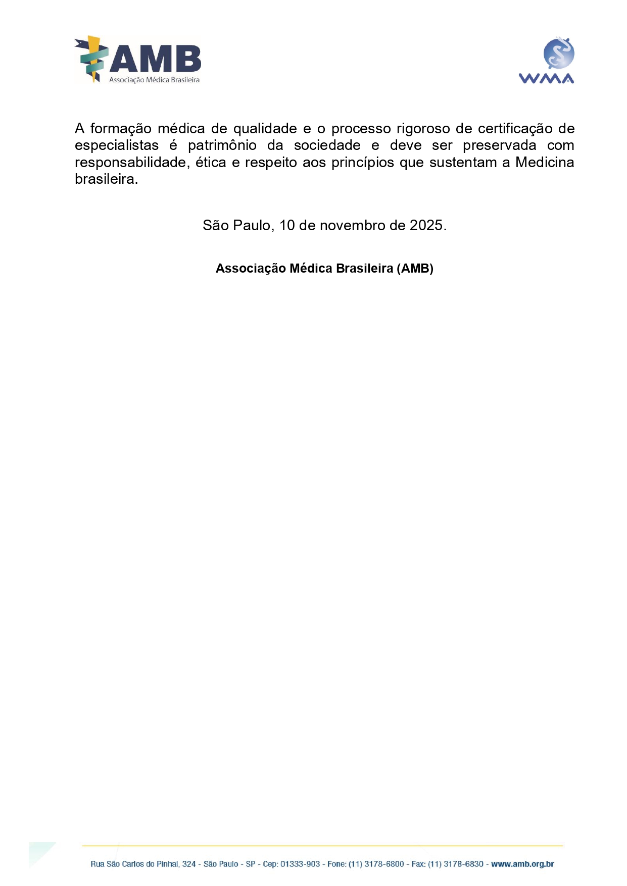 AMB alerta para grave ameaça à qualificação dos médicos especialistas no Brasil 11 de novembro de 2025 - Categoria: Notícias