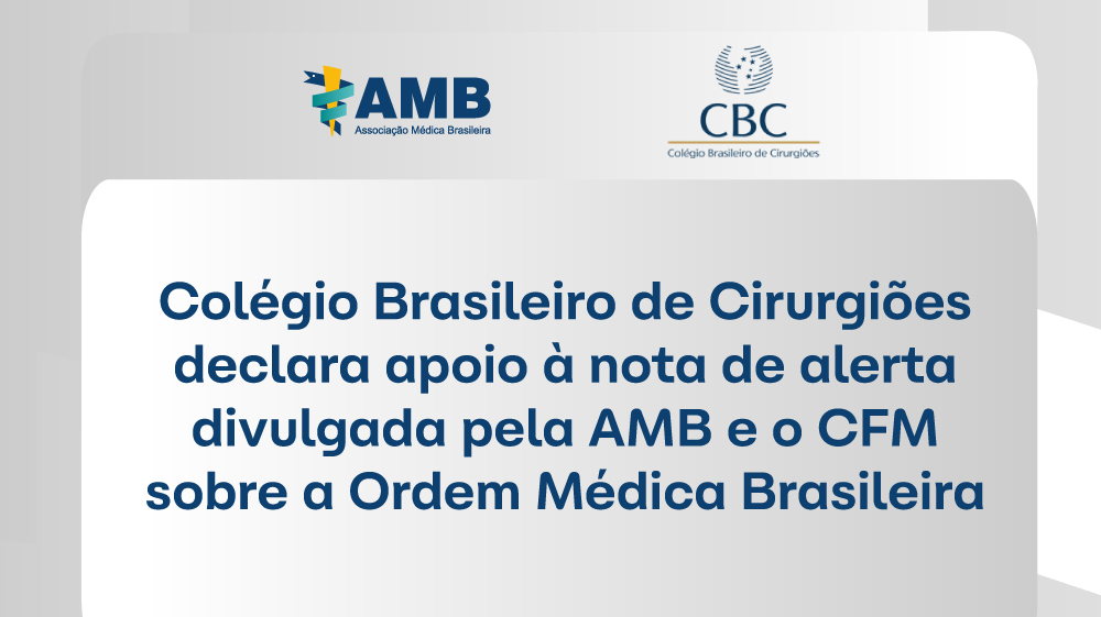 O Colégio Brasileiro de Cirurgiões (CBC), uma das mais tradicionais entidades científicas da área cirúrgica no país, manifestou por meio de carta, o seu apoio à nota conjunta divulgada pela Associação Médica Brasileira (AMB) e pelo Conselho Federal de Medicina (CFM) sobre a chamada Ordem Médica Brasileira (OMB).