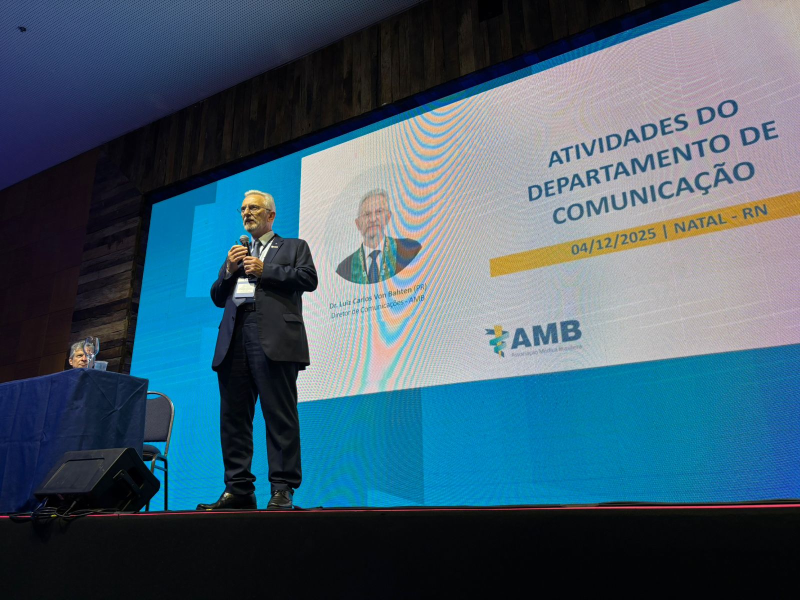 A Associação Médica Brasileira (AMB) apresentou, durante a 2ª Reunião Anual do Conselho Deliberativo realizada nesta quinta (4), em Natal (RN), os avanços e as prioridades estratégicas da área de Comunicação. A exposição foi conduzida pelo Dr. Luiz Carlos Von Bahten, Diretor de Comunicação da AMB, que destacou os principais resultados de 2025 e o plano de ações para 2026.