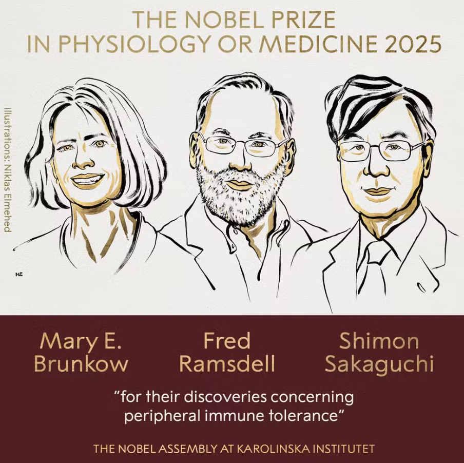 Os americanos Mary E. Brunkow e Fred Ramsdell e o japonês Shimon Sakaguchi são os ganhadores do Prêmio Nobel 2025 em Medicina, anunciou a Assembleia do Nobel no Instituto Karolinska, da Suécia, nesta segunda-feira (6).