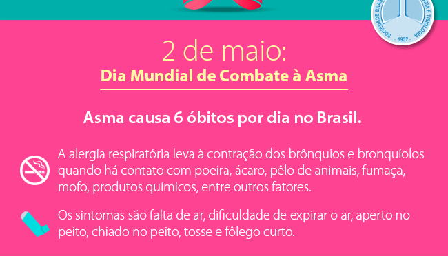 Dois de maio é o Dia Mundial de Combate à Asma. Nesta ocasião especial, a Sociedade Brasileira