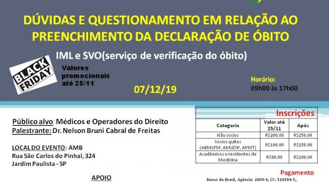 A Associação Brasileira de Medicina Legal e Perícias Médicas de São Paulo (ABMLPM/SP) promove, no próximo dia