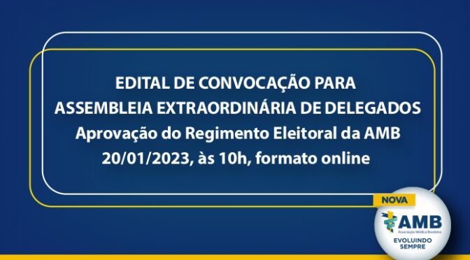EDITAL DE CONVOCAÇÃO PARA ASSEMBLEIA EXTRAORDINÁRIA DE DELEGADOS REGIMENTO ELEITORAL AMB 2023 PARA APROVAÇÃO DA ASSEMBLEIA QUADRO COMPARATIVO ENTRE