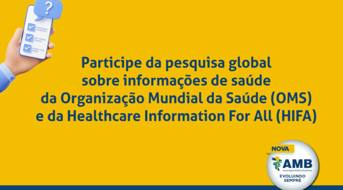 A Associação Médica Mundial (WMA) e a Associação Médica Brasileira (AMB) estão apoiando esta pesquisa que vai