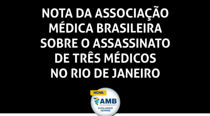 A Associação Médica Brasileira (AMB) recebe com consternação a notícia dos assassinatos dos médicos Drs. Diego Ralf