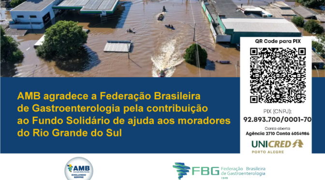 A Associação Médica Brasileira (AMB) agradece a Federação Brasileira de Gastroenterologia que contribuiu com o Fundo Solidário