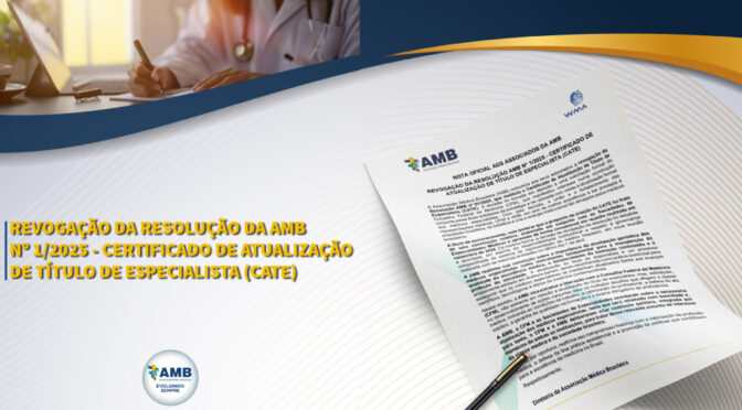NOTA OFICIAL AOS ASSOCIADOS DA AMB A Associação Médica Brasileira (AMB) comunica aos seus associados a revogação