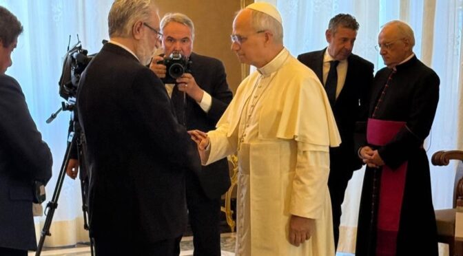 Presidente da Associação Médica Brasileira (AMB), Dr. César Eduardo Fernandes e Papa Leão XIV Nesta quinta-feira, 2