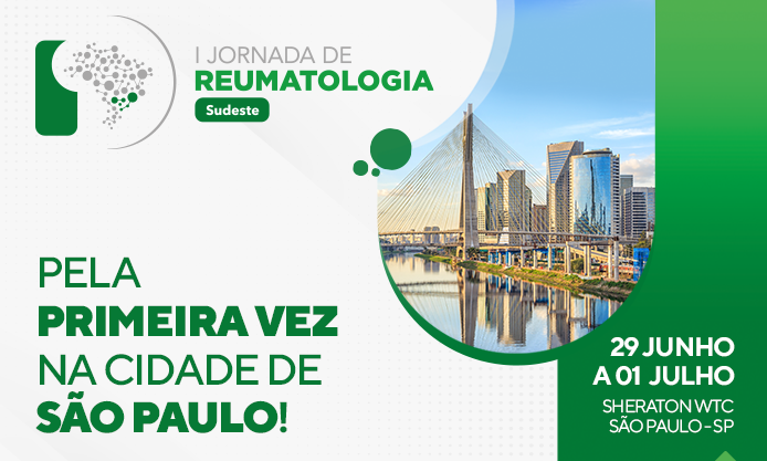 Em sua primeira edição, a Jornada Sudeste de Reumatologia, que acontecerá em São Paulo, nos dias 29 de junho a 01 de julho, reunirá os médicos e residentes associados das regionais envolvidas (São Paulo, Rio de Janeiro, Espirito Santo e Minas Gerais) além de acadêmicos e profissionais da área de Reumatologia! Serão 3 dias de discussão e atualização sobre os temas mais relevantes e de interesse para todos os médicos com interesse em doenças reumáticas. Será um prévia de nosso Congresso Brasileiro deste ano, em Goiânia.